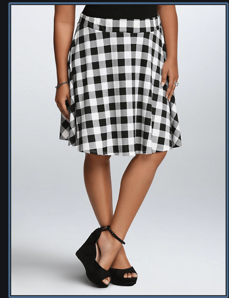I would never have known this was Betsey unless I saw that her name was on the tag. While the label says plaid, this print is more commonly known as Gingham and we’ve seen this many times from Torrid before in dresses, leggings, and skirts. At 68$ this was an easy pass as we’ve seen it before in different colors, fabrics, and forms.